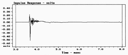 ![]() Fig.6 Alón IV, impulse response on listening axis at 45" (5 ms time window, 30kHz bandwidth).